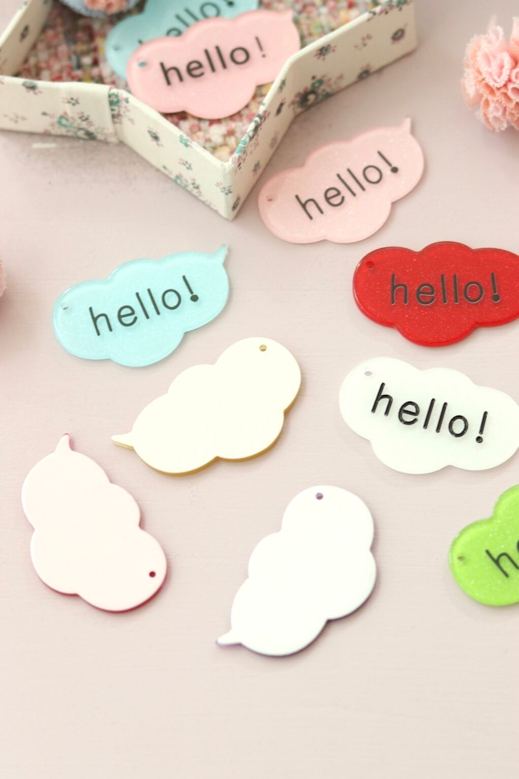 hello!の文字ががわいい、プレートタイプのチャームです。