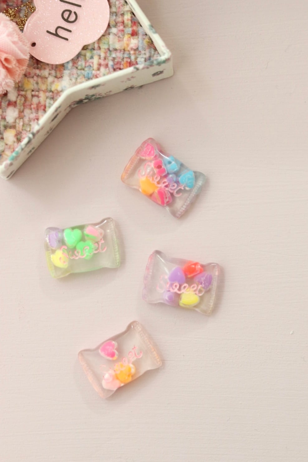 こちらはヒートンはついていませんので、星のkeyringの中に入れていただいたり、デコパーツとしてお使い頂けます。